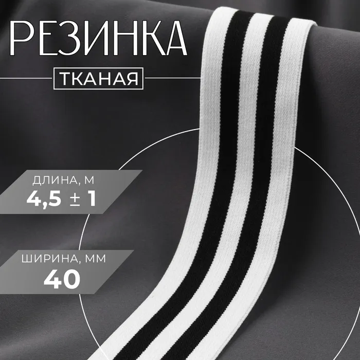 Резинка тканая, мягкая, 40 мм, 4.5±1 м, чёрная, белая — Характеристики