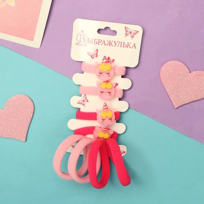 Резинки для волос «Амелия», набор 8 шт., единорожек с цветочками, 4 см, розовые — Характеристики
