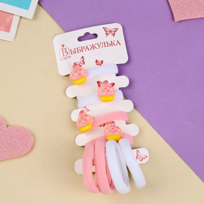 Резинки для волос «Амелия», набор 8 шт., пирожное, 4 см, розово-белые — Характеристики