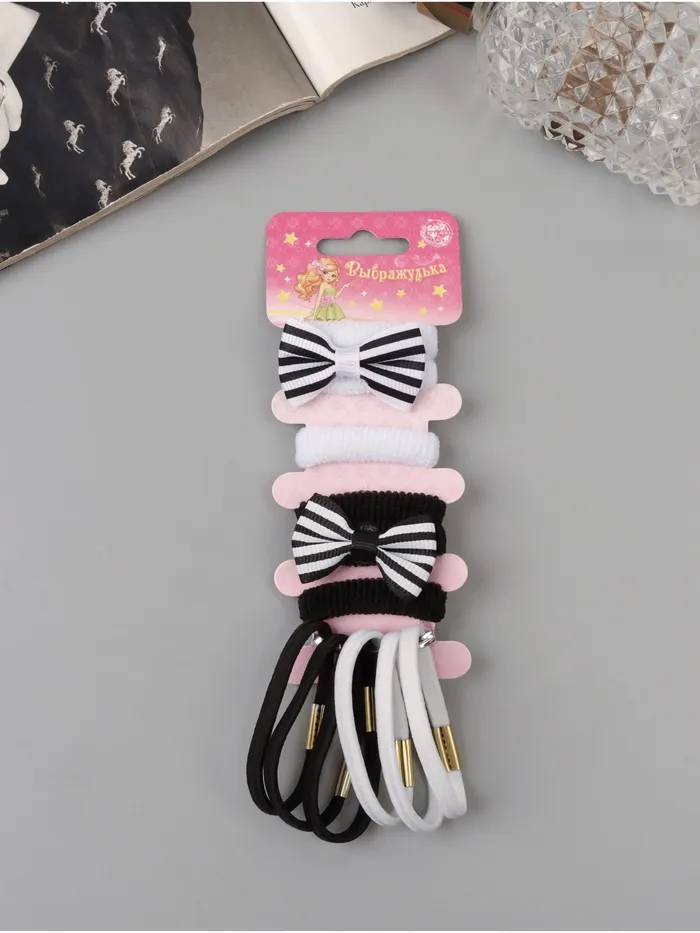 Резинки для волос «Бантик», набор 12 шт., полоски, чёрно-белая — Характеристики