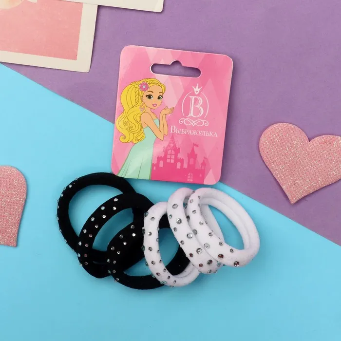 Резинки для волос «Блеск», набор 6 шт., стразинки, чёрные, белые — Характеристики