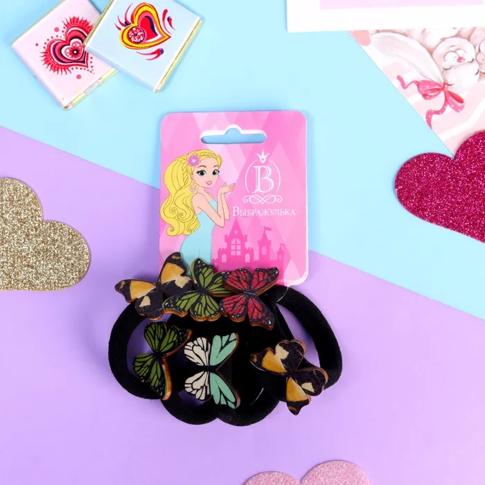 Резинки для волос «Деревяшечка», набор 6 шт., бабочка — Характеристики