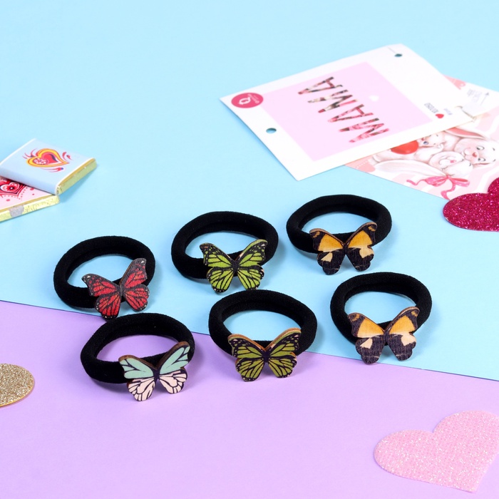 Резинки для волос «Деревяшечка», набор 6 шт., бабочка