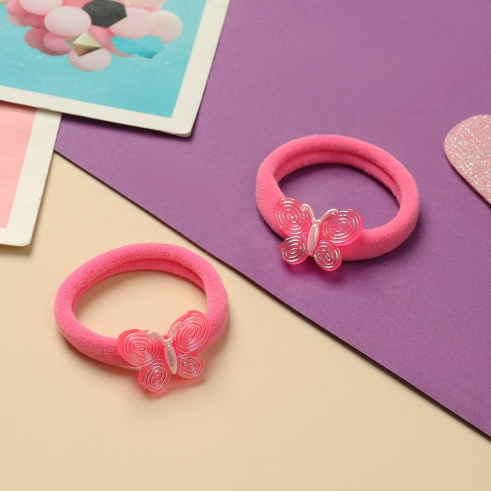 Резинки для волос «Фея», набор 2 шт., бабочка, 4 см, розовые