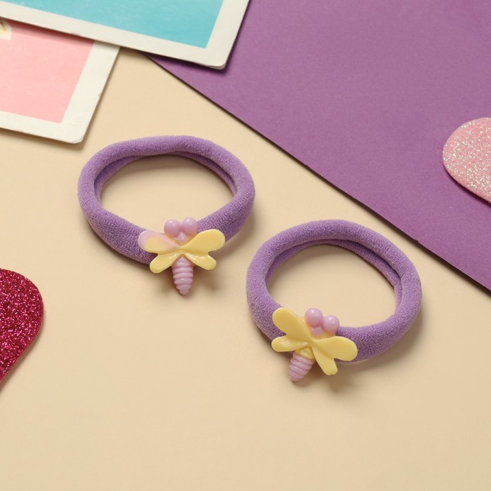 Резинки для волос «Фея», набор 2 шт., стрекоза, 4 см, сиреневые