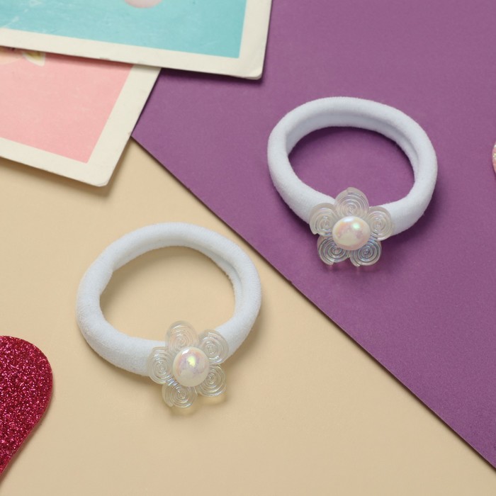 Резинки для волос «Фея», набор 2 шт., цветочек, 4 см, белые