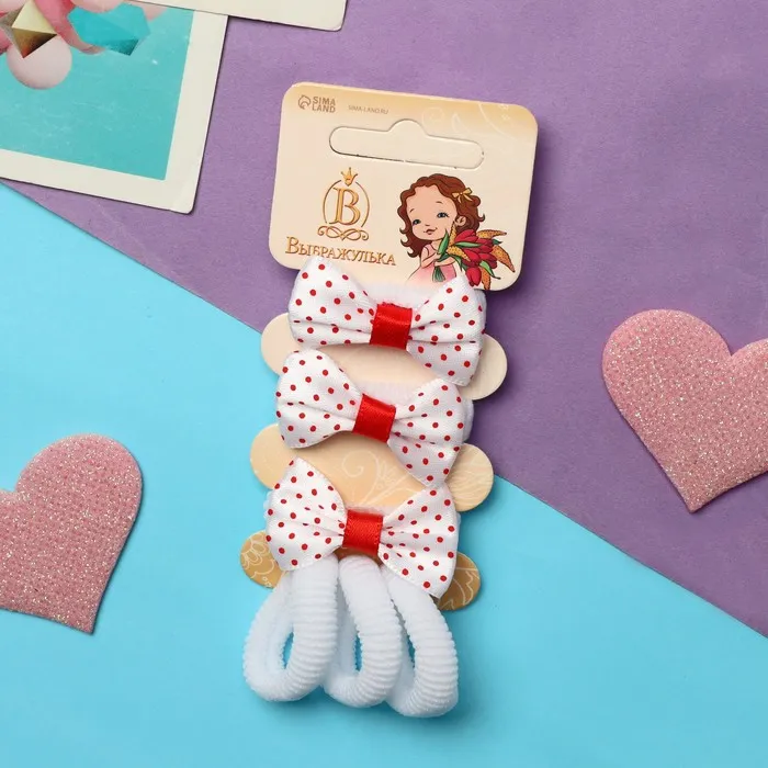 Резинки для волос «Глория», набор 6 шт., горох, белая