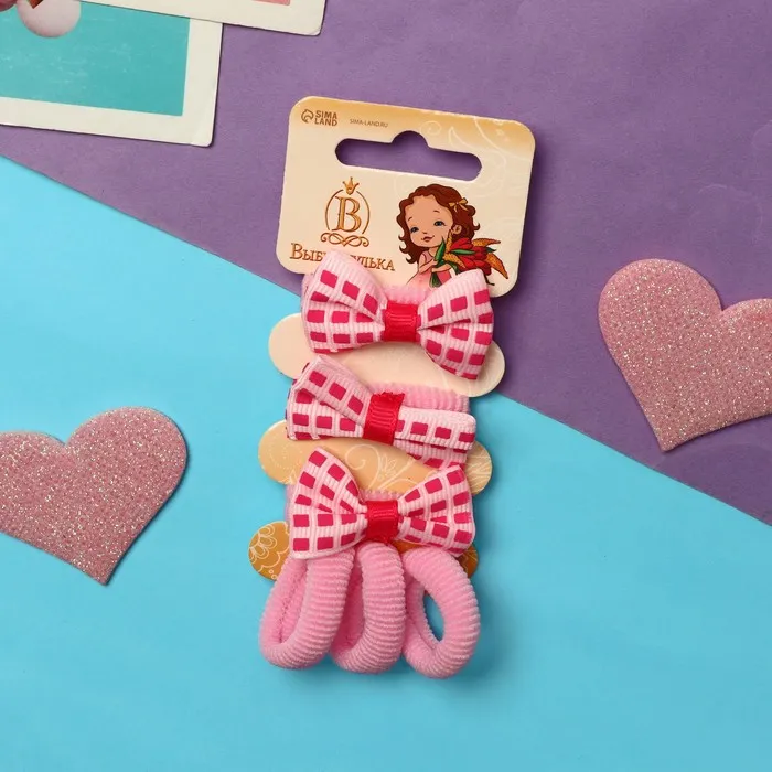 Резинки для волос «Глория», набор 6 шт., крупная клетка, розовая