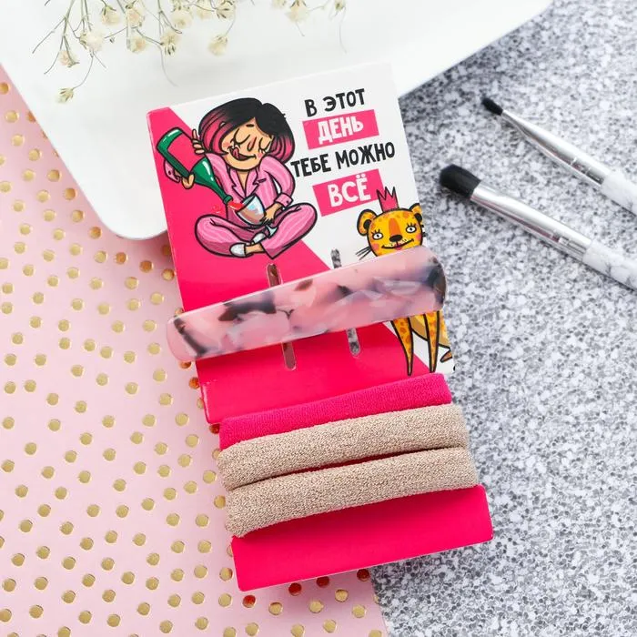 Резинки для волос и заколка на подложке «В этот день тебе можно все», d=3.5 см — Характеристики