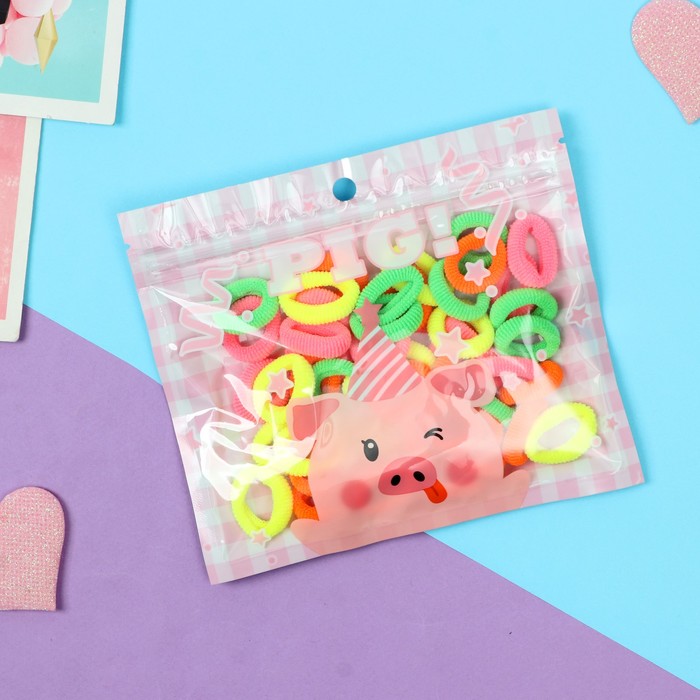 Резинки для волос «Хорошие пожелания», набор 50 шт., хрюшка, 2 см
