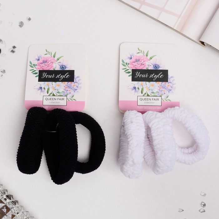 Резинки для волос «Клэр», набор 3 шт., 2×5 см, чёрные, белые