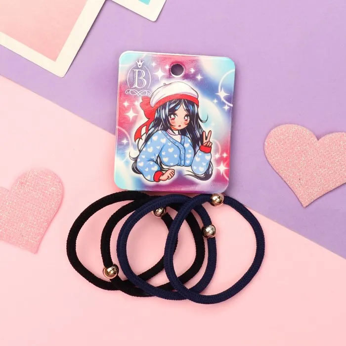 Резинки для волос «Комиксы», набор 4 шт., девчонка шляпка, 5 см, чёрные, синие — Характеристики