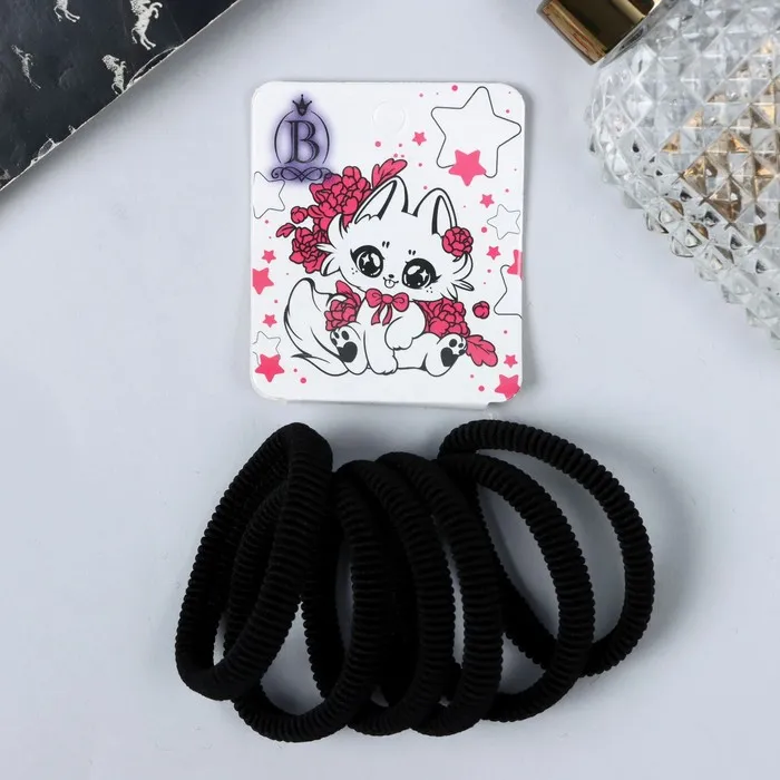 Резинки для волос «Комиксы», набор 6 шт., котик бантик, 5 см, чёрные — Характеристики