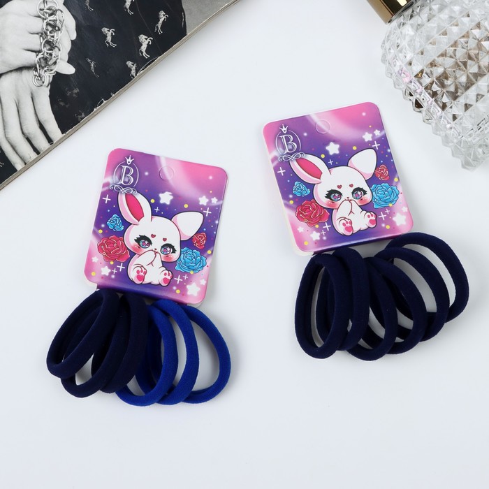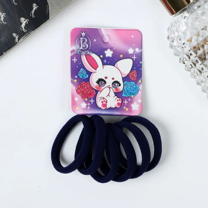 Резинки для волос «Комиксы», набор 6 шт., зайка, 4 см, синие