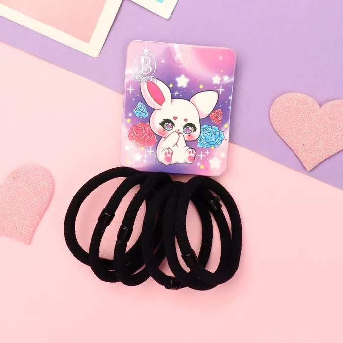Резинки для волос «Комиксы», набор 6 шт., зайка, 5.5 см, чёрные
