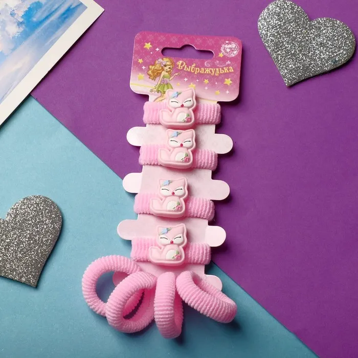Резинки для волос «Конфетти», набор 8 шт., лисёнок, розовые — Характеристики
