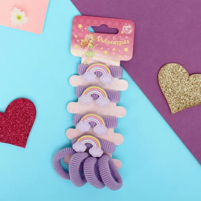 Резинки для волос «Конфетти», набор 8 шт., радуга, фиолетовые — Характеристики
