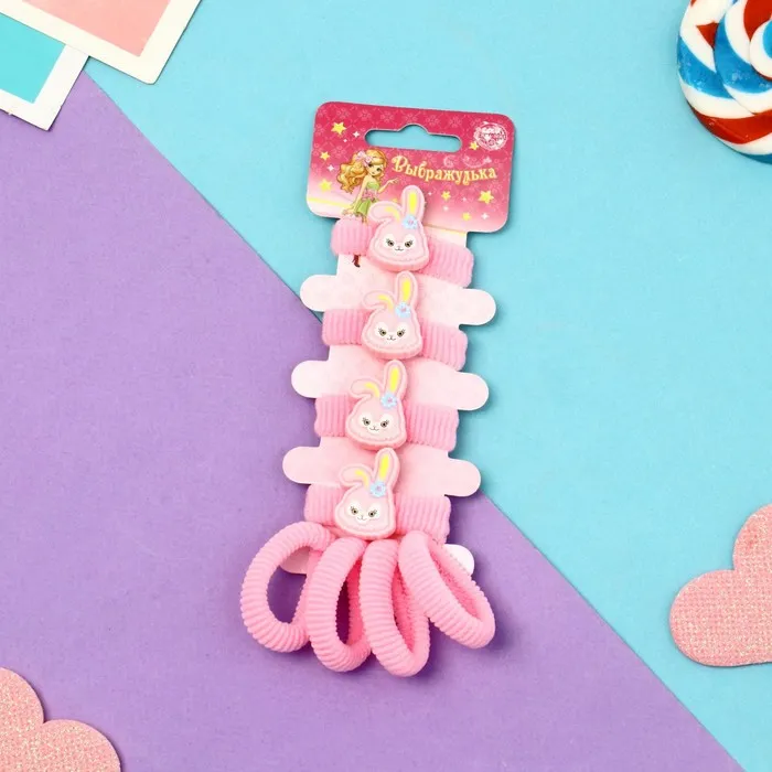 Резинки для волос «Конфетти», набор 8 шт., зайка, розовые — Характеристики