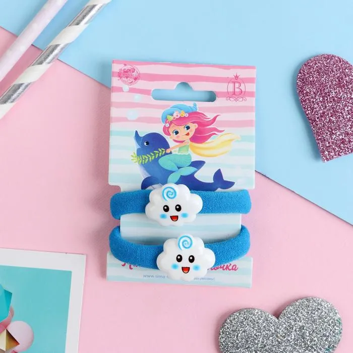 Резинки для волос «Кроха», набор 2 шт., облачко, 3.5 см, бело-голубые