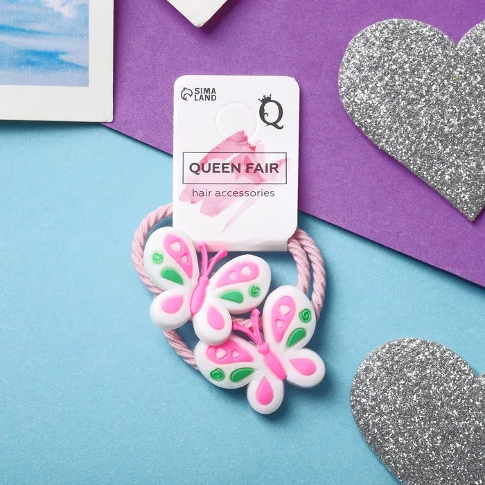 Резинки для волос «Крошка», набор 2 шт., бабочка сердечки, белые — Характеристики
