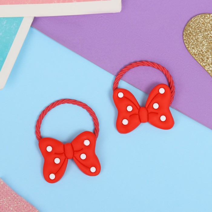 Резинки для волос «Крошка», набор 2 шт., бантик горошек, красные — Характеристики