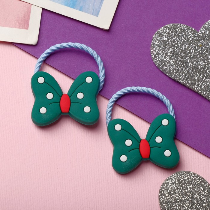 Резинки для волос «Крошка», набор 2 шт., бантик горошек, зелёные — Характеристики