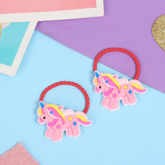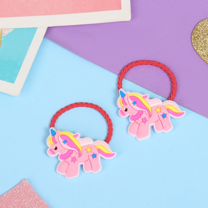Резинки для волос «Крошка», набор 2 шт., единорожек, розовые — Характеристики
