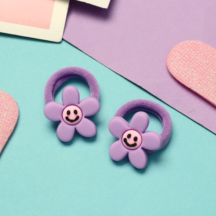 Резинки для волос «Крошка», набор 2 шт., цветочек, 3 см, сиреневые