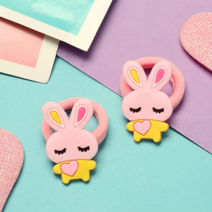 Резинки для волос «Крошка», набор 2 шт., зайка, 3 см, розовые