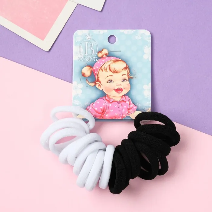 Резинки для волос «Крошка», набор 20 шт., хвостики, 2.5 см, чёрные, белые — Характеристики