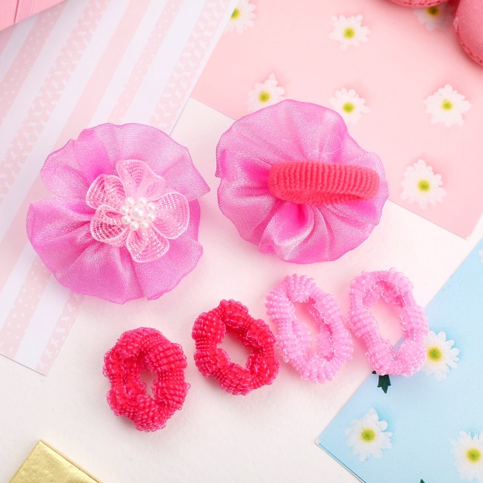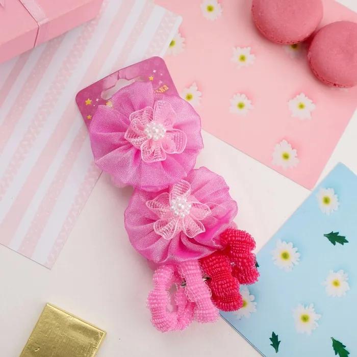 Резинки для волос «Кружево», набор 6 шт., объёмный цветок, розовые — Характеристики