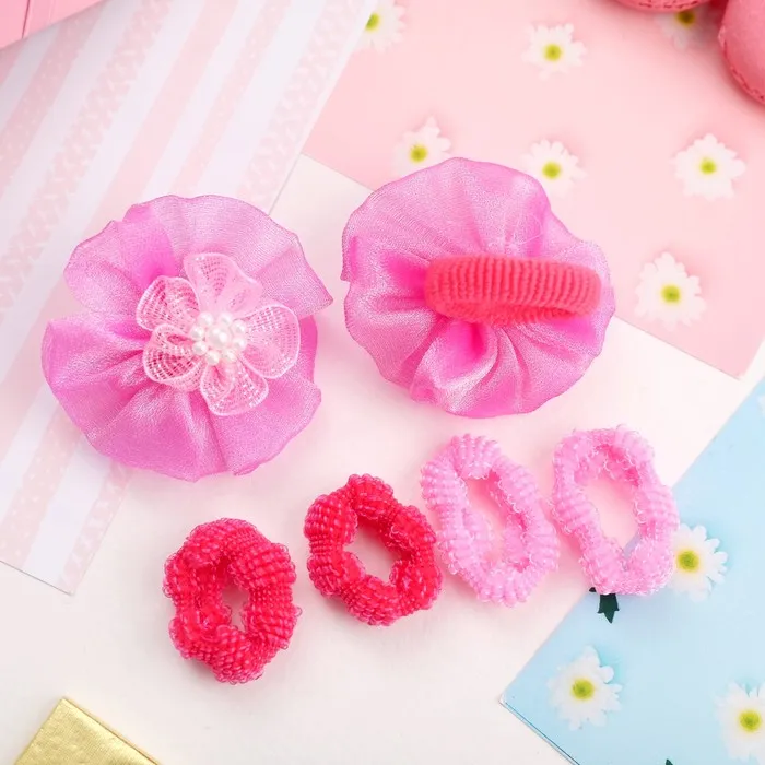 Резинки для волос «Кружево», набор 6 шт., объёмный цветок, розовые