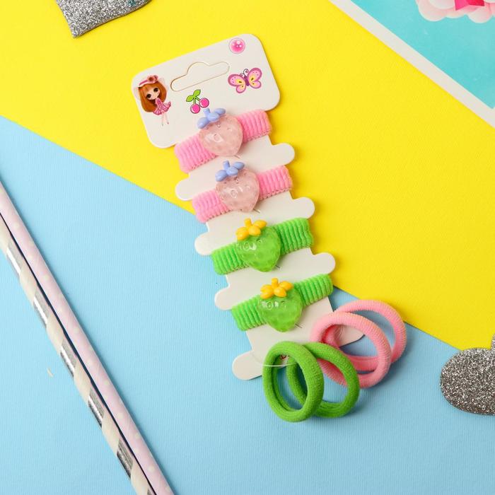 Резинки для волос «Лапочка», набор 8 шт., клубнички, розово-зелёные