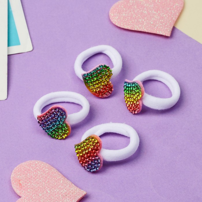 Резинки для волос «Лола», набор 4 шт., сердце, d=2.5 см, белые