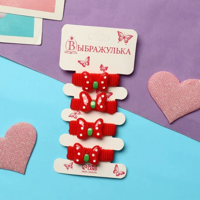 Резинки для волос «Лоррет», набор 4 шт., бантик горох, красные — Характеристики