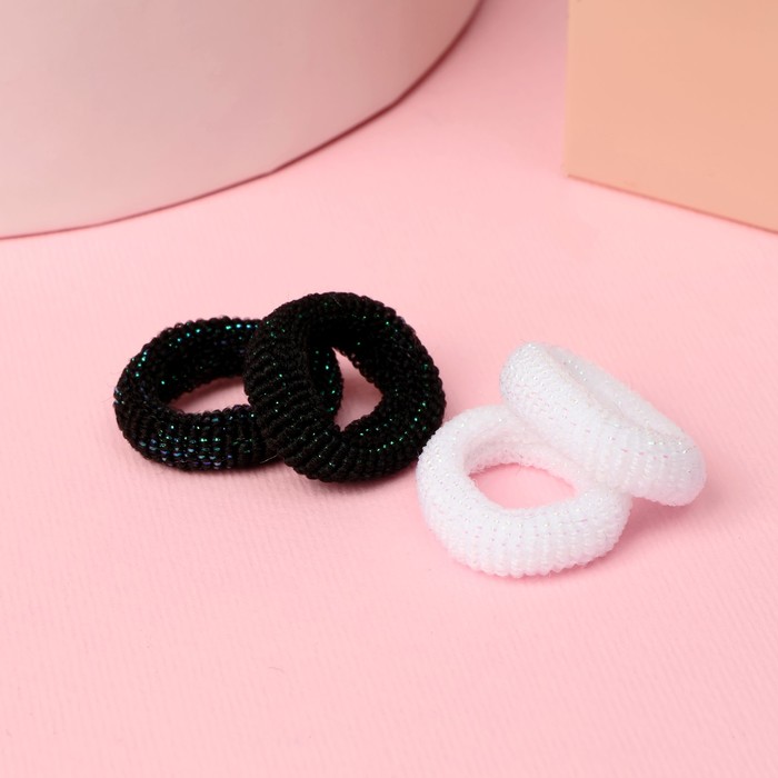 Резинки для волос «Махрушка блеск», набор 24 шт., чёрные, белые — Характеристики