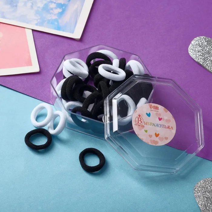 Резинки для волос «Махрушка», набор 40 шт., классика, 1.5 см, чёрно-белые — Характеристики