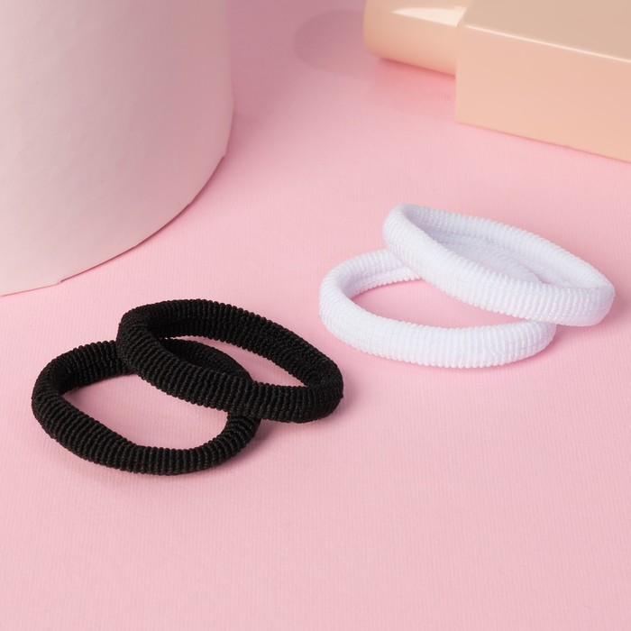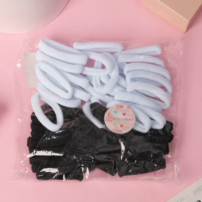 Резинки для волос «Махрушка», набор 48 шт., 5.5 см, чёрные, белые — Характеристики