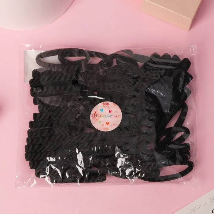 Резинки для волос «Махрушка», набор 48 шт., 6 см, чёрные — Характеристики