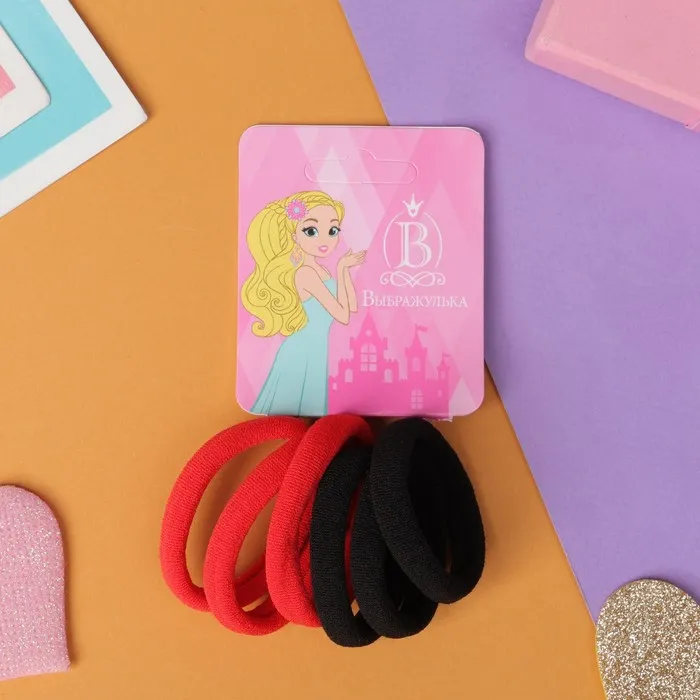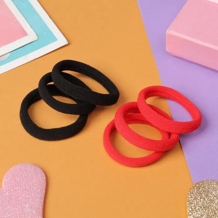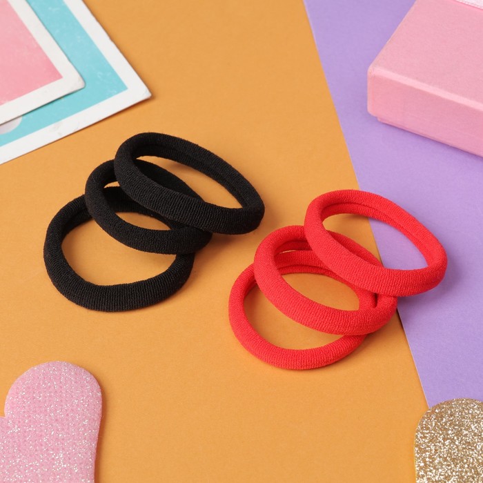 Резинки для волос «Махрушка», набор 6 шт., 3.5 см, чёрные, красные — Характеристики