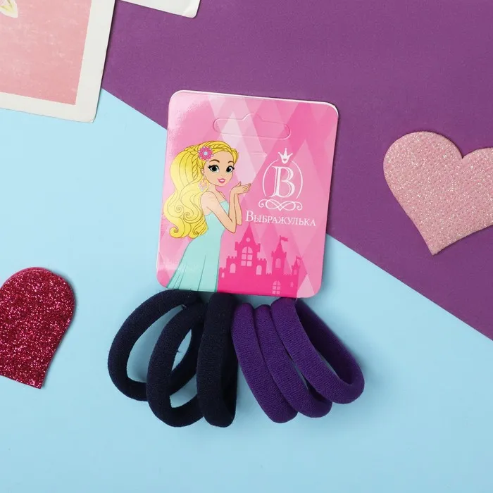 Резинки для волос «Махрушка», набор 6 шт., 3.5 см, синие, фиолетовые — Характеристики