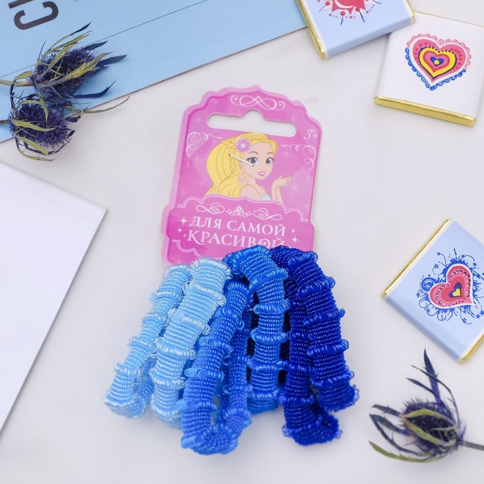 Резинки для волос «Махрушка», набор 6 шт., 4 см, синие, голубые — Характеристики