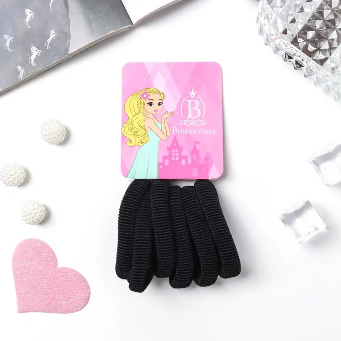 Резинки для волос «Махрушка», набор 6 шт., 5 см, чёрные — Характеристики