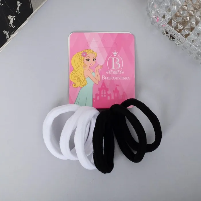 Резинки для волос «Махрушка», набор 6 шт., полоска, 4.5 см, чёрные, белые — Характеристики