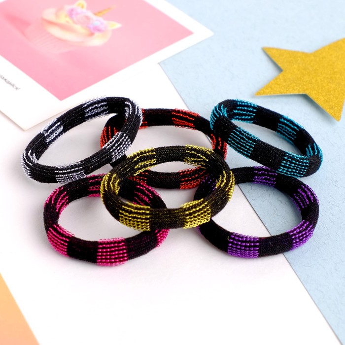 Резинки для волос «Махрушка», набор 6 шт., шахматка чёрный — Характеристики