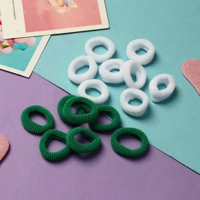Резинки для волос «Махрушка спорт», набор 100 шт., 2 см, бело-зелёные — Характеристики