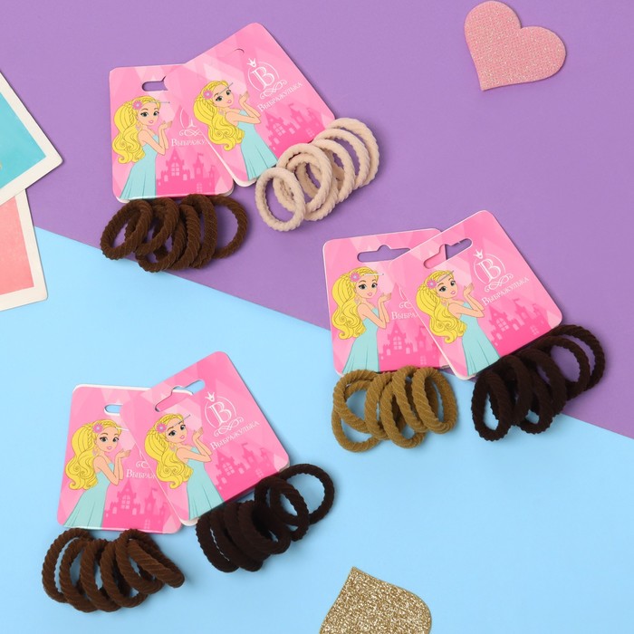 Резинки для волос «Махрушка спорт», набор 6 шт., полосы диагональ, 2.5 см, коричневые — Характеристики