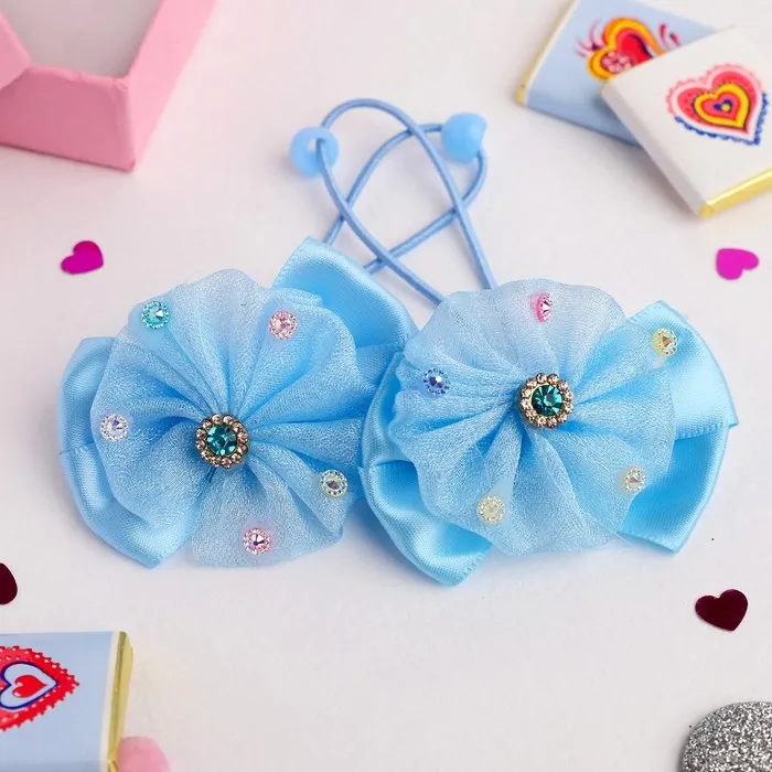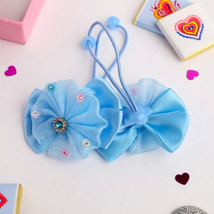 Резинки для волос «Маленькая модница», набор 2 шт., стразы, голубые