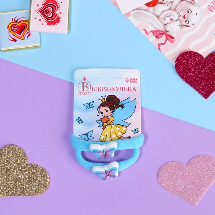 Резинки для волос «Маленькая радость», набор 2 шт., бабочка, 3.5 см, голубые — Характеристики