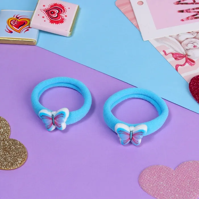 Резинки для волос «Маленькая радость», набор 2 шт., бабочка, 3.5 см, голубые